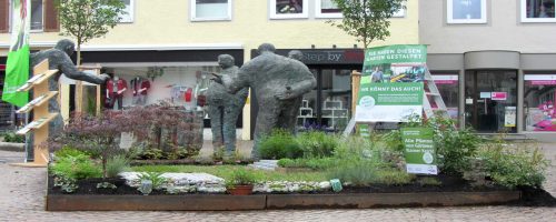 Mäuerle statt Mauer, Hochbeetle statt Hochbeet – für den Happy Family Day in Bad Saulgau haben sich unsere Auszubildenden Niklas Munk und Sonja Eisele dieses Jahr etwas ganz besonderes überlegt und einen Showgarten im Maßstab 1:5 angelegt. Mit allem, was dazugehört: Terrasse, Hochbeet, Pflanzungen und eine Natursteinmauer. Nur ist alles exakt fünf Nummern kleiner. Die vielen Besucher des Happy Family Day waren hellauf begeistert – und die Presse auch.