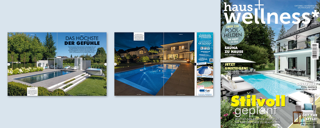 Ein Garten als zweites „Wohnzimmer“ war das Ziel dieses Projekts am Bodensee, bei dem wir die Gesamtkonzeption von der Planung bis zur Ausführung geliefert haben. Mit einem großzügigen Swimmingpool von Riviera und einer exklusiven Gartenlandschaft, die höchsten Ansprüchen genügt. Das war der Zeitschrift „haus + wellness“ einen mehrseitigen Artikel in der Novemberausgabe wert.