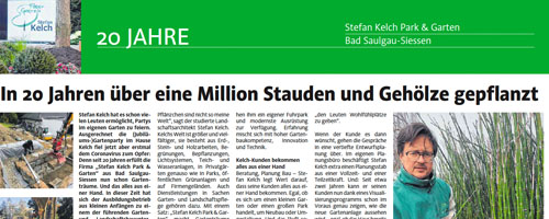 20 Jahre höchste Kompetenz im Garten- und Landschaftsbau, über eine Million gepflanzte Stauden und Gehölze, unzählige zufriedene Kunden – die Gründe zum Feiern wären zahlreich gewesen. Leider hat uns Corona einen Strich durch die Rechnung gemacht. Umso mehr freuen wir uns, dass die Schwäbische Zeitung unser Firmenjubiläum mit einem großen Sonderteil würdigt.